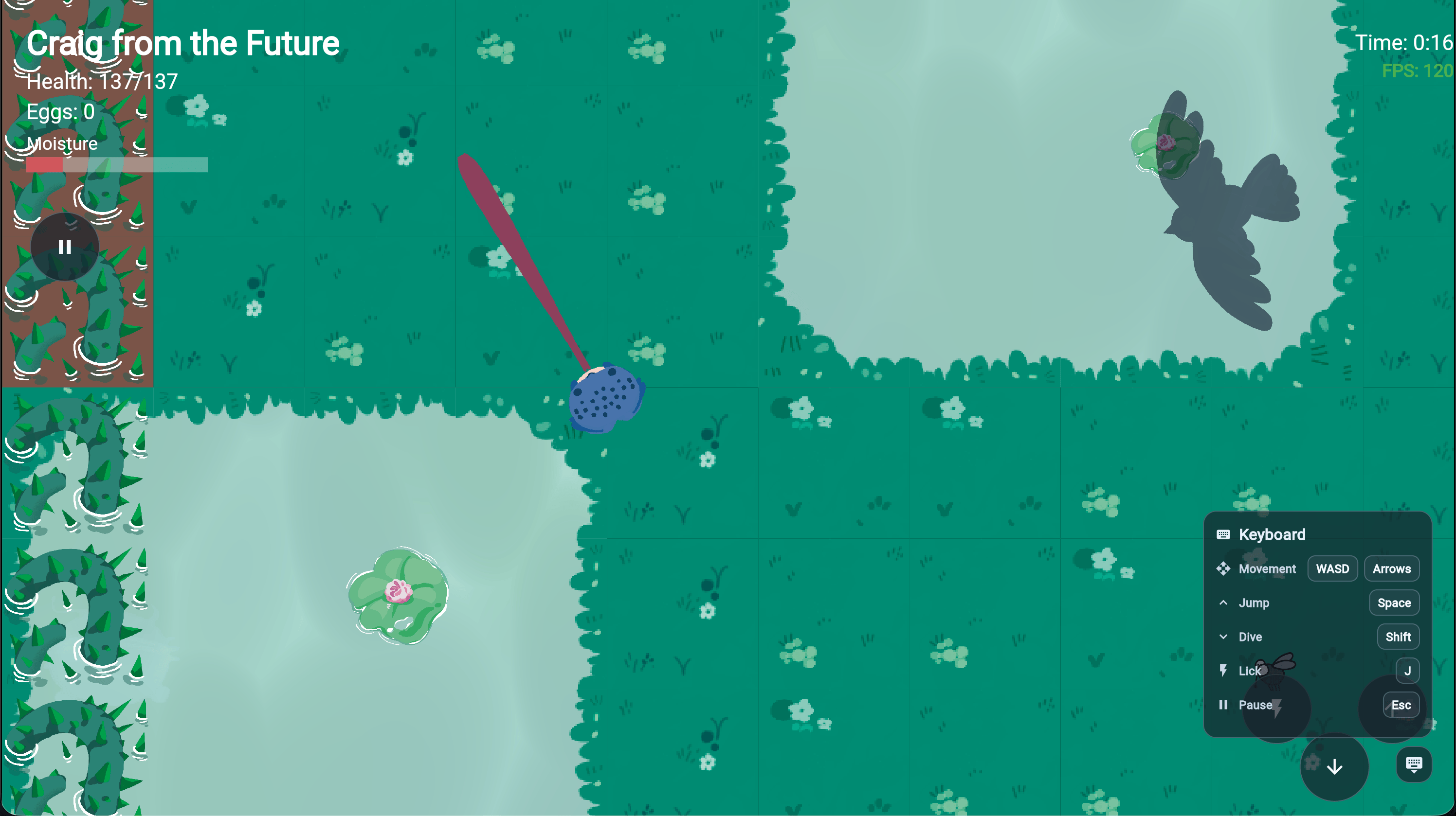 Guide your frog through a dangerous pond. Dodge predators, rescue siblings, and bring everyone home before it's too late.